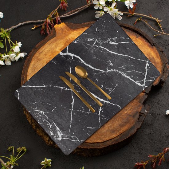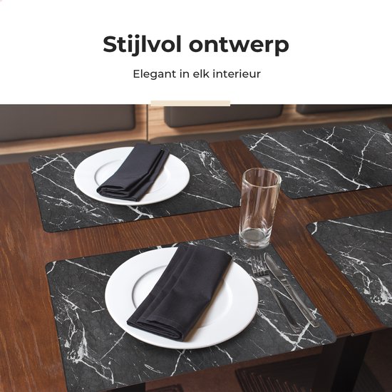 Notre set de table s'adapte sans effort sur n'importe quelle table, que vous dîniez ou au travail. Le bel aspect cuir noir ajoute de l'élégance à n'importe quelle table.