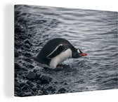 Cavalier de l'étang à la recherche de nourriture dans l'eau Toile 120x80 cm - Tirage photo sur toile (Décoration murale salon / chambre)