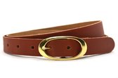 Riem Femme Take-it Cuir Cognac - Largeur 2,5 cm - Riem Femme Cuir - Longueur totale 110 cm / Taille ceinture 95 - Boucle ovale dorée