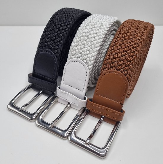 Ceinture élastique Ceinture extensible Ceinture tressée Ceinture tressée Ceinture élastique - unisexe - Couleur 1-Marron 2- Wit 3- Zwart 120 CM Offre pack de 3 de SKB Fashion