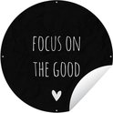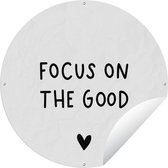 Cercle de jardin Citation anglaise Focus sur le bien avec un coeur fond noir - 60x60 cm - Affiche jardin