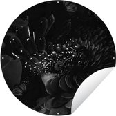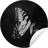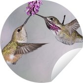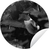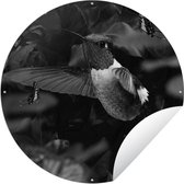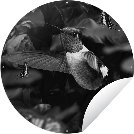 Cercle de jardin Colibri entre les fleurs roses anciennes et les papillons - noir et blanc - 60x60 cm - Affiche de jardin ronde - Extérieur
