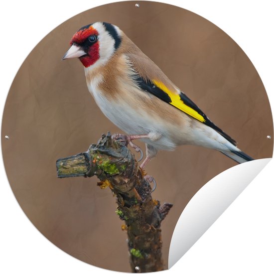 Cercle de jardin Gros plan d'un chardonneret coloré sur une fine branche - 150x150 cm - Poster de jardin rond - Extérieur