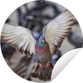 Cercle de jardin - Gros plan d'un pigeon en vol - 150x150 cm - Affiche de jardin ronde - Extérieur