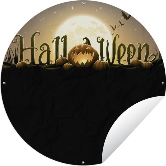 Cercle de jardin Les lettres d'Halloween illuminées par la pleine lune dans une illustration - 120x120 cm - Affiche de jardin ronde - Extérieur XXL / Groot format !