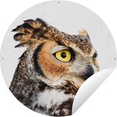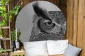 Cercle de jardin Moitié du visage d'un hibou marron - noir et blanc - 150x150 cm - Affiche de Jardin Ronde - Extérieur