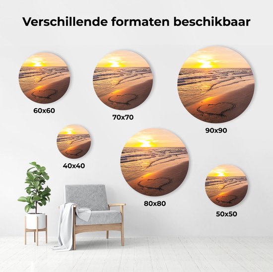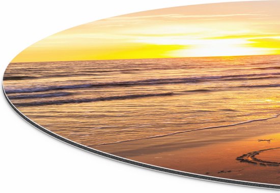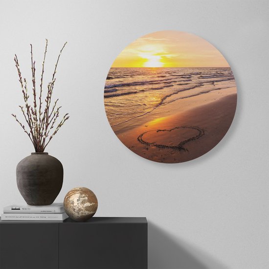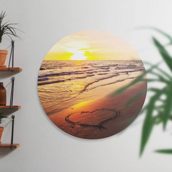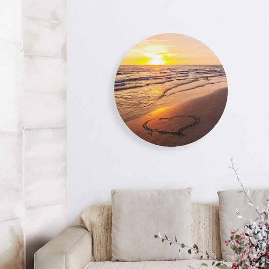 Cercle Mural Artaza Dibond - Coucher De Soleil Sur La Plage Avec Un Coeur - Ø 60 cm - Cercle Mural - Tableau Rond - Pour Intérieur et Extérieur