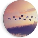 Cercle Mural Artaza Dibond - Silhouette Vogels Au Coucher Du Soleil - Ø 70 cm - Cercle Mural - Tableau Rond - Pour Intérieur et Extérieur