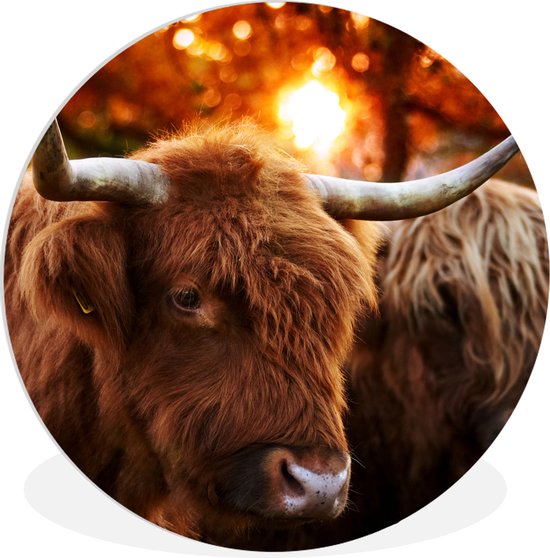 Cercle mural - Cercle mural - ⌀ 90 cm - Plastique - Highlanders écossais - Forêt - Automne