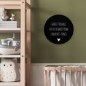 Cercle mural - Cercle mural Intérieur - ⌀ 30 cm - Plastique - Citation anglaise Great things never came from comfort zones fond noir