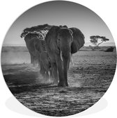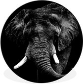 Cercle mural d'intérieur - Animaux - Éléphant - Papillons - Zwart - Wit - Décoration murale ronde