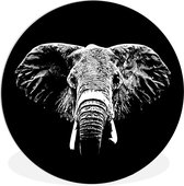 Cercle Mural - Cercle Mural Intérieur - Animaux - Éléphant - Papillons - Zwart - Wit - ⌀ 140 cm - Décoration murale - Peintures Ronds