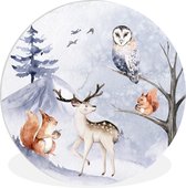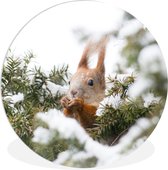 Cercle mural - Cercle mural intérieur - Écureuil - Arbre - Flocon de neige - Hiver - ⌀ 30 cm - Décoration murale - Peintures ronds