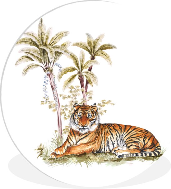 Cercle Mural - Cercle Mural Intérieur - Tigre - Arbre - Yeux - ⌀ 30 cm - Décoration murale - Peintures Ronds
