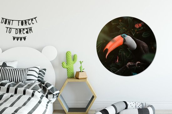 Cercle Mural - Cercle Mural Intérieur - Toucan - Papillon - Feuilles - ⌀ 90 cm - Décoration murale - Peintures Ronds