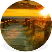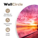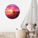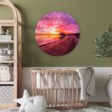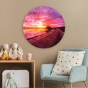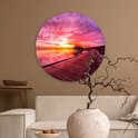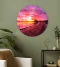 Cercle mural - Cercle mural - Jetée - Horizon - Rose - Soleil - Mer - Plastique - Tableaux ronds - 60x60 cm - Décoration murale ronde - Décoration murale ronde
