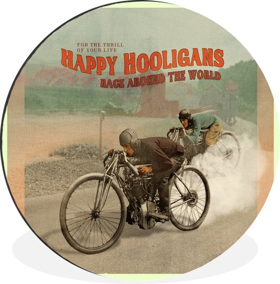 Cercle mural - Cercle mural - Mancave - Moto - Roues - Vintage - Aluminium - Dibond - ⌀ 60 cm - Intérieur et extérieur