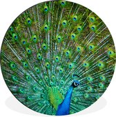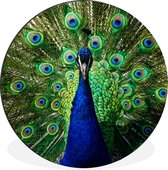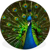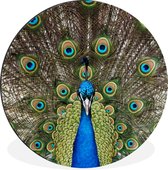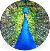 Cercle mural - Cercle mural - Paon - Ressorts - Blauw - Aluminium - Dibond - ⌀ 120 cm - Intérieur et Extérieur XXL