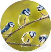 Cercle mural intérieur - Vogels - Baies - Jaune - Zwart - Branches - Forex - Décoration murale ronde