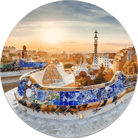 Envie de plus d'ambiance ou d'un look différent pour votre pièce ? Le parc Güell est l'un des points forts de l'architecte Antoni Gaudí à Barcelona. Le célèbre parc aux mosaïques colorées est l'une des plus grandes attractions touristiques de Barcelone. Faites de ce cercle mural Park Güell le point culminant de votre salon, chambre ou bureau !