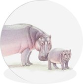 WallCircle - Wall Circle - Wall Circle Indoor - Hippopotame - Veau - Aquarelle - 30x30 cm - Décoration murale - Peintures Ronds