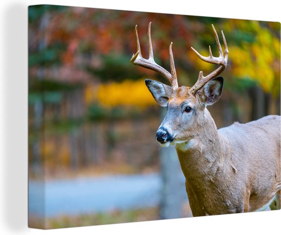Cerf avec la tête en l'air toile 2cm 60x40 cm - Tirage photo sur toile peinture (Décoration murale salon / chambre) / animaux sauvages Peintures sur toile