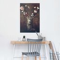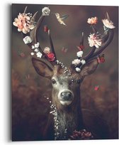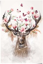 Cerf romantique - Colibri - Papillon - Couronne de fleurs - Affiche 61 x 91,5 cm Papier