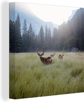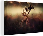 Cerfs communs dans la brume toile 30x20 cm - petit - impression photo sur toile peinture Décoration murale salon / chambre à coucher) / Animaux sauvages Peintures Toile