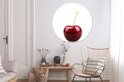 Cerisier solitaire avec une tige verte Assiette en plastique cercle mural ⌀ 120 cm - impression photo sur cercle mural / cercle vivant (décoration murale) XXL / Groot format!
