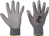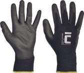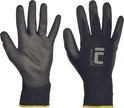 Polyester tricoté sans couture, gants avec fine couche de polyuréthane sur la paume et les doigts et manchette élastique.