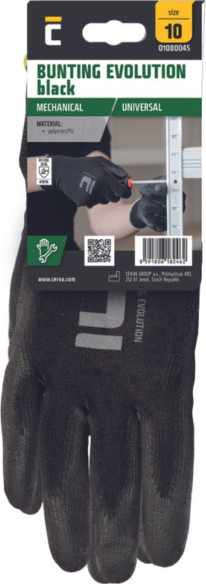Cerva BUNTING BLACK EVO blister de gants 01080045BN - 12 pièces - Zwart - 8