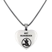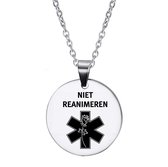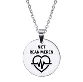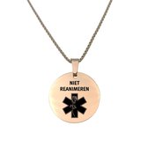 Le collier Ne pas réanimer, également connu sous le nom de jeton Ne pas réanimer, est un outil durable et pratique pour les personnes qui souhaitent indiquer clairement qu'elles ne veulent pas de RCR en cas d'urgence. Le collier a un texte clair gravé, de sorte que les souhaits du porteur soient rapidement et clairement visibles pour les professionnels de la santé. Un badge de non-réanimation est légalement valide si la personne qui en fait la demande est mentalement capable.