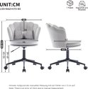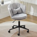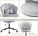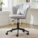 Chaise de bureau - chaise de maquillage - ergonomique - chaise en velours avec dossier en pétales - réglable en hauteur - chaise pivotante à roulettes - Grijs