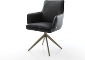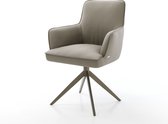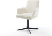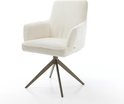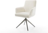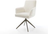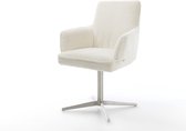 Chaise de salle à manger Heira- Flex avec accoudoirs, structure transversale, finition large avec noyau à ressorts ensachés blanc bouclé titane, pivotant à 360°
