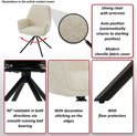 Cette chaise de salle à manger exclusive avec un revêtement en tissu élégant combine un design élégant avec un maximum de confort et de fonctionnalité, parfaite pour les espaces de vie exigeants. Le revêtement en chenille confère à la chaise un aspect texturé unique qui est non seulement visuellement attrayant, mais également exceptionnellement doux et confortable, ajoutant une touche de luxe et de confort à votre salle à manger. La chaise rembourrée est dotée d'une fonction de positionnement automatique, qui garantit qu'elle revient automatiquement à sa position de départ après chaque utilisation, garantissant ainsi une apparence soignée et harmonieuse à tout moment. Le roulement à billes à fonctionnement fluide vous permet de faire pivoter la chaise à 90° dans les deux sens, offrant ainsi flexibilité et liberté de mouvement.