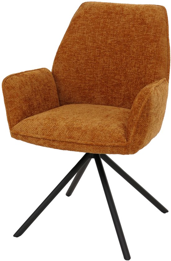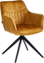 Chaise de salle à manger MCW-G67, chaise de cuisine, chaise avec accoudoirs, pivotante, position automatique, chenille, Oeko-Tex MVG ~ jaune moutarde