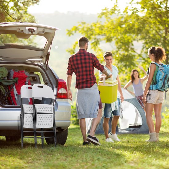 Avec cet ensemble de 2 chaises pliantes, vous pouvez vous asseoir confortablement n'importe où, que vous souhaitiez savourer une délicieuse tasse de café sur le balcon ou simplement vous « prélasser » sur la terrasse. Les chaises robustes résistent aux intempéries et peuvent donc être utilisées à l'extérieur toute l'année. Vous n'en avez plus besoin ? Ensuite, vous pouvez simplement les plier et les ranger de manière peu encombrante dans le garage, la cave ou la remise. De plus, les chaises ont une poignée dans le dossier, ce qui les rend faciles à emporter partout !