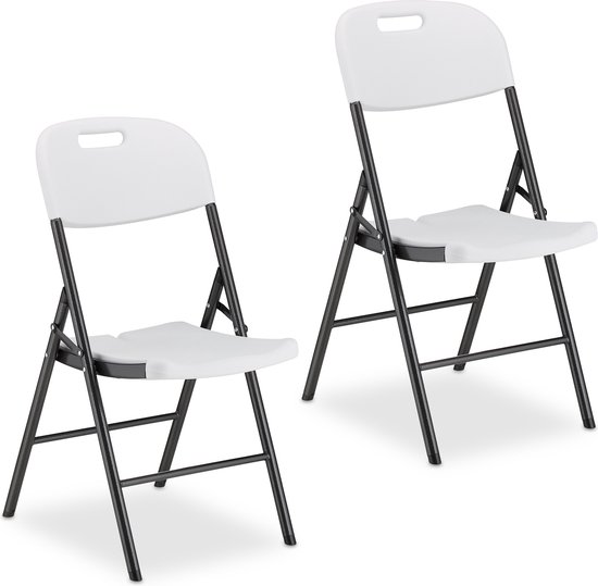 Chaise pliante Relaxdays pour le jardin - lot de 2 - chaises de balcon - plastique & acier - claire - blanc