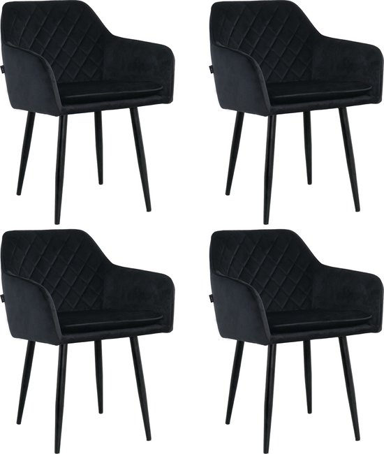 Colenis - Chaise de salle à manger Iris - Zwart - Set de 4 - Velours - Velours - Design - Avec accoudoir