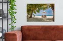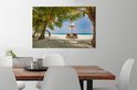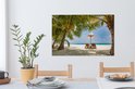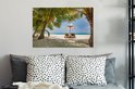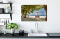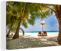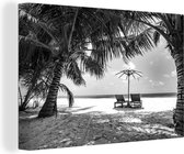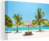 Chaises longues entre palmiers sur une plage de Bali 90x60 cm - Tirage photo sur toile (Décoration murale salon / chambre)