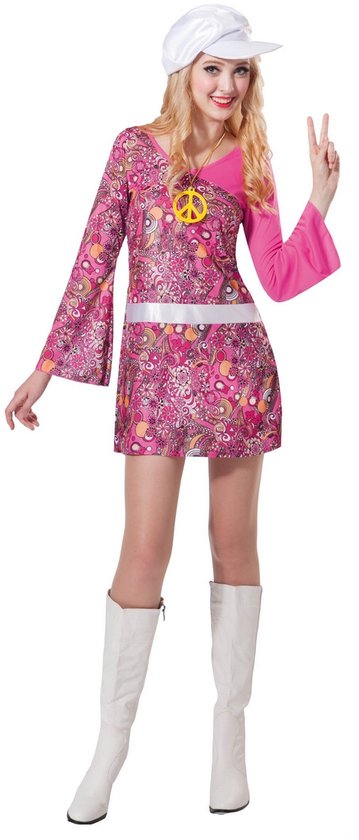 Chaks - Costume Hippie - Hippie Rose Moderne Pippa - Femme - Rose, Wit / Beige - Large - Déguisements - Déguisements