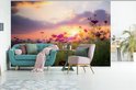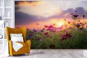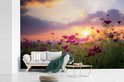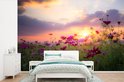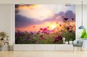 Champ de fleurs avec des fleurs roses au crépuscule 600x400 cm