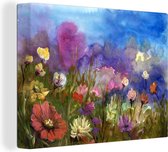 Champ de fleurs avec tournesols dans la nuit 40x30 cm - petit - Tirage photo sur toile (Décoration murale salon / chambre) / Peintures sur toile Fleurs
