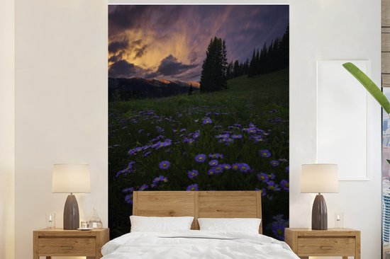 Champ de fleurs dans les montagnes Rocky au crépuscule 170x260 cm