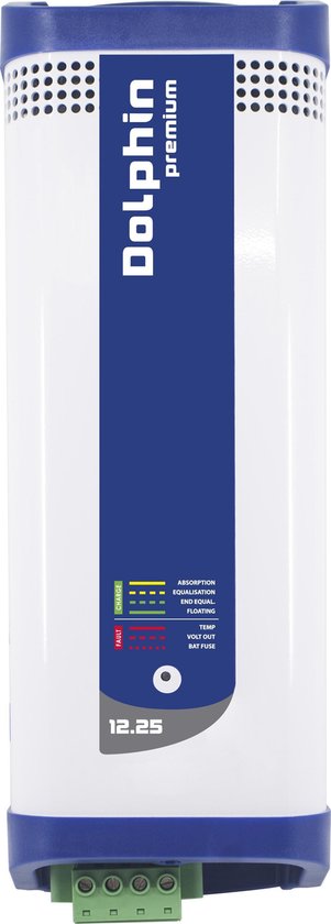 Les chargeurs de batterie AC / DC Dolphin Premium Series sont le choix parfait pour les bateaux à moteur et les voiliers. Sûr, robuste, efficace et très facile à connecter: simplement plug-and-play. Les chargeurs de batterie sont disponibles en différents modèles de 10A à 40A. Choisissez vous-même le bon modèle.