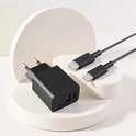 Chargeur Ultra rapide WiseQ 33 W - Double chargeur rapide Portes USB A et USB C - Convient pour Samsung, Huawei, Oppo, iPhone 15 et MacBook - Comprend USB-C de 1,2 m - Câble USB C - Zwart Premium