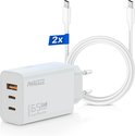 Chargeur USB C 65 W avec 3 Portes (2x USB-C, 1x USB-A) – Comprenant 2x Câbles USB C de 3 mètres – Adaptateur Super Rapide