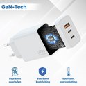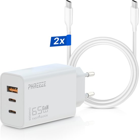 Le chargeur USB-C Phreeze 65 W avec trois ports et deux Câbles USB-C tressés en nylon de 3 mètres inclus est de premier ordre. Grâce à la combinaison de la technologie de charge rapide, de l'alimentation GaN et des câbles extra-longs, vous bénéficiez toujours d'une vitesse de charge maximale. Avec une puissance maximale de 65 Watt en théorie et la prise en charge des derniers protocoles de charge rapide, ce chargeur charge votre smartphone ou votre tablette plus rapidement que les chargeurs classiques. Idéal pour les appareils tels que la série Samsung Galaxy S ou iPhone 15. Vous pouvez également charger très rapidement des accessoires tels que des écouteurs, des manettes ou des banques d'alimentation. En plus des téléphones et des tablettes, ce chargeur est également suffisamment puissant pour les ordinateurs portables USB-C tels que le MacBook Air et les Chromebooks. De cette façon, vous disposez d'un seul adaptateur pour tous vos appareils, à la maison et en déplacement. Le chargeur dispose de 2 ports USB-C et 1 port USB-A. L'alimentation est distribuée intelligemment lorsque vous connectez plusieurs appareils en même temps. Utilisez-vous plusieurs ports en même temps ? Le chargeur distribue ensuite automatiquement l'énergie afin que tous vos appareils soient chargés efficacement et en toute sécurité. Cet ensemble contient 2 Câbles USB-C tressés en nylon robuste. La finition tressée empêche les nœuds et l'usure, ce qui permet aux câbles de durer très longtemps. Contrairement à de nombreux adaptateurs standards, ce chargeur utilise la technologie GaN. Cela permet une taille plus compacte, des performances plus efficaces et un fonctionnement plus frais, tout en fournissant plus de puissance que les chargeurs traditionnels de 20 W, 25 W ou même 45 W. Conclusion Le chargeur USB-C Phreeze 65 W 3 Portes est le chargeur rapide tout-en-un idéal pour tous ceux qui souhaitent charger plusieurs appareils en même temps. Compact, puissant et équipé de câbles durables.
