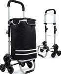 Chariot de courses Latium à 3 Roues - Chariot de courses pliable avec compartiment réfrigérant - Chariot avec sac de courses amovible - Chariot de courses pliable avec rampe d'escalier - Zwart