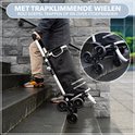 Rien n'est plus ennuyeux que de rentrer chez soi dans un chariot sale et boueux après une journée de pluie. Avec le chariot libre-service Latium, vous n'avez pas à vous en soucier grâce aux ailes intégrées. Cette fonction intelligente garantit que vos courses et le chariot lui-même restent propres et secs, même sur les chemins humides et boueux. Geen les taches sur vos vêtements, et fini les travaux de ménage difficiles une fois rentré chez vous. Et pour les moments où vous souhaitez un peu plus de flexibilité, ce produit ingénieux est équipé d'une poignée pratique, vous permettant de détacher facilement le sac de la base et de le porter confortablement sur votre épaule. C'est parfait pour les moments où vous souhaitez charger et décharger rapidement ou simplement un peu plus de flexibilité dans la façon dont vous transportez vos courses. De plus, le chariot Latium est bien entendu pliable, ce qui signifie que vous pourrez le ranger facilement sans prendre beaucoup de place.